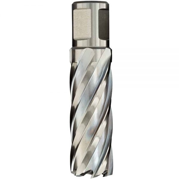 De HSS kernboor met een boordiepte van 55mm heeft een unieke tandgeometrie en afwisselende tandvormen wat zorgt voor optimale spaanvoer, superieure prop uitwerping en exacte maatvoering.