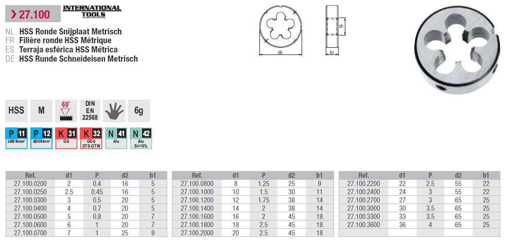 HSS Ronde snijplaat, DIN-EN 22568 Metrisch M36 x 4