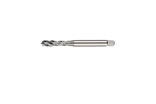 DIN 371, 60°, verdikte schacht, spiraalhoek 40°, voor blinde gaten, aansnijding 2,5 gangen, snijlengte 10 gangen teruglopend naar de 5e gang