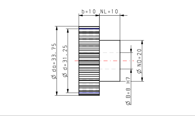 Bewerking tandwiel moduul 1.25 Z = 25 met naaf
