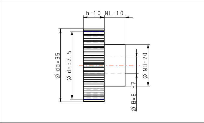 Bewerking tandwiel moduul 1.25 Z = 26 met naaf
