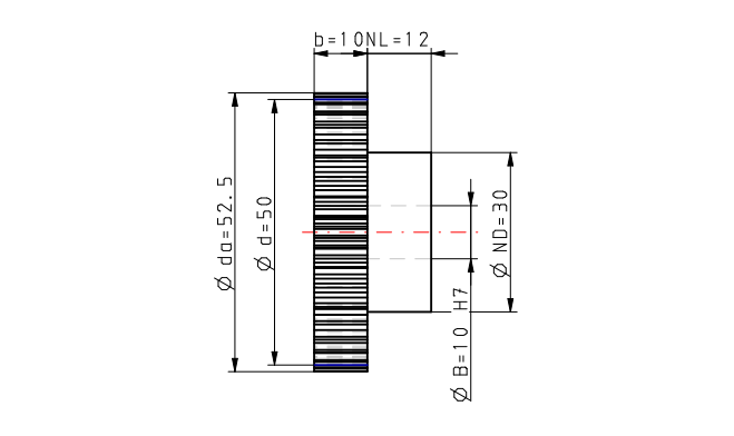 Bewerking tandwiel moduul 1.25 Z = 40 met naaf