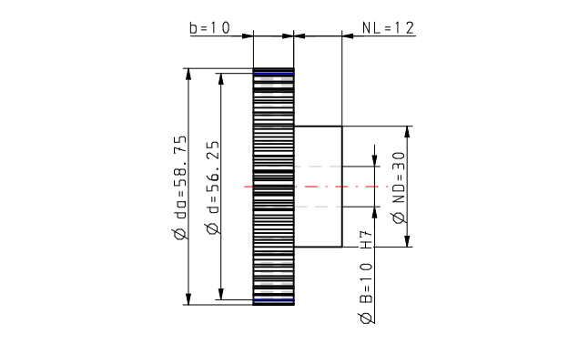 Bewerking tandwiel moduul 1.25 Z = 45 met naaf