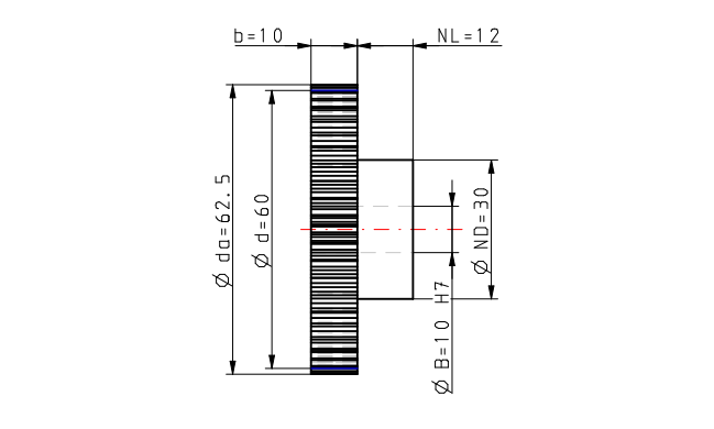Bewerking tandwiel moduul 1.25 Z = 48 met naaf