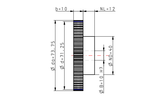 Bewerking tandwiel moduul 1.25 Z = 57 met naaf