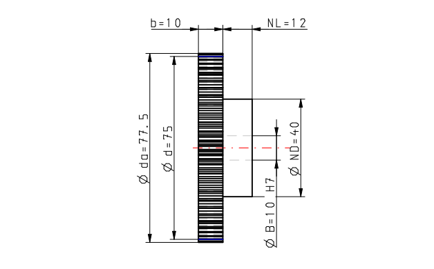 Bewerking tandwiel moduul 1.25 Z = 60 met naaf