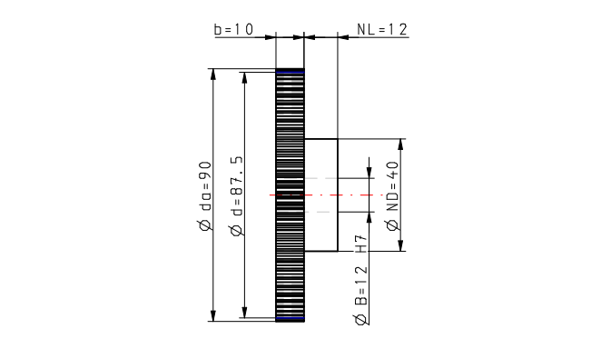 Bewerking tandwiel moduul 1.25 Z = 70 met naaf