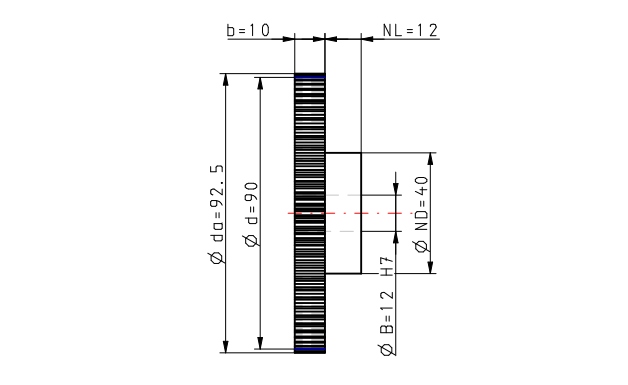 Bewerking tandwiel moduul 1.25 Z = 72 met naaf