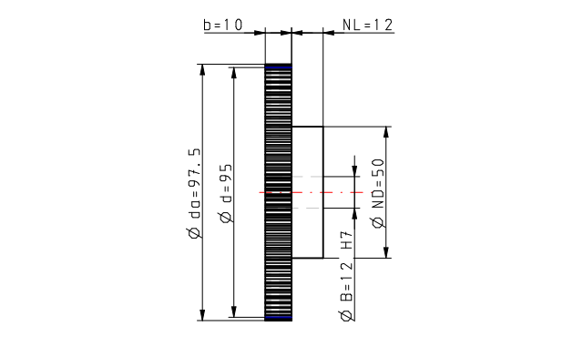 Bewerking tandwiel moduul 1.25 Z = 76 met naaf