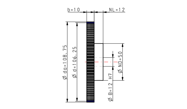 Bewerking tandwiel moduul 1.25 Z = 85 met naaf