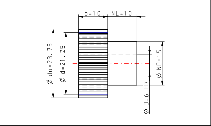Bewerking tandwiel moduul 1.25 Z = 17 met naaf