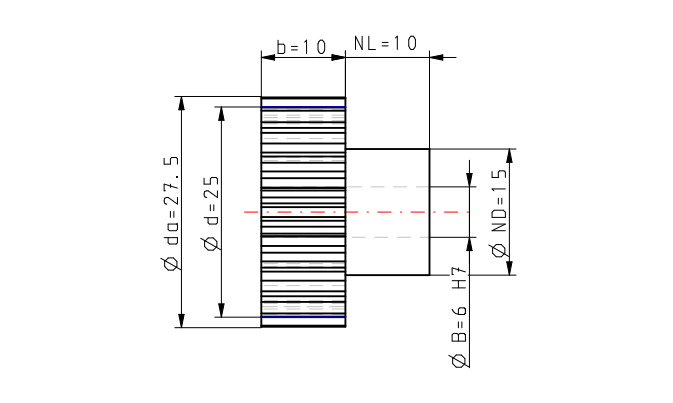 Bewerking tandwiel moduul 1.25 Z = 20 met naaf