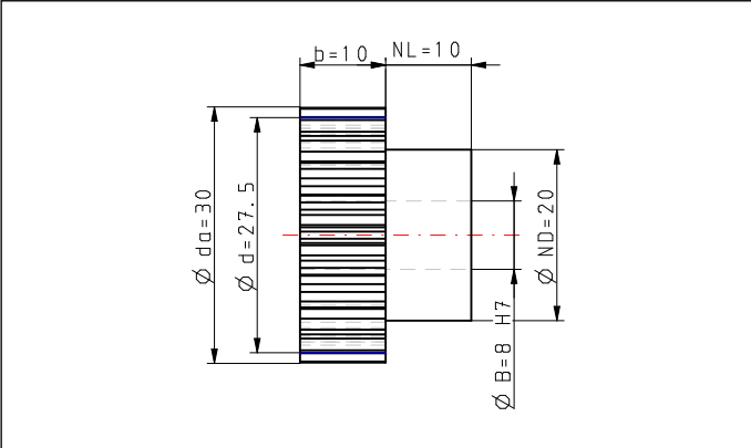 Bewerking tandwiel moduul 1.25 Z = 22 met naaf