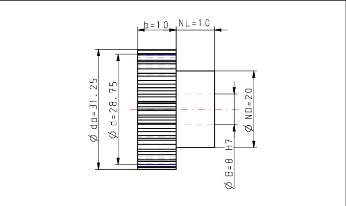 Bewerking tandwiel moduul 1.25 Z = 23 met naaf