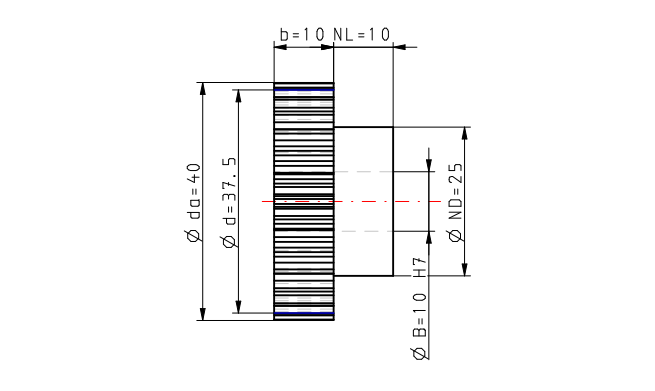 Bewerking tandwiel moduul 1.25 Z = 30 met naaf