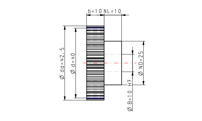 Tandwiel moduul 1.25 Z = 32 met naaf