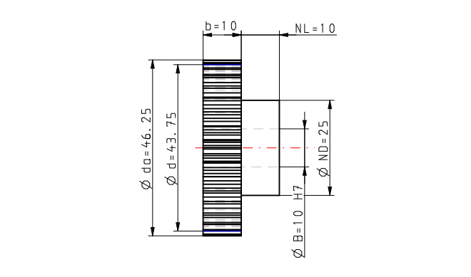 Bewerking tandwiel moduul 1.25 Z = 35 met naaf