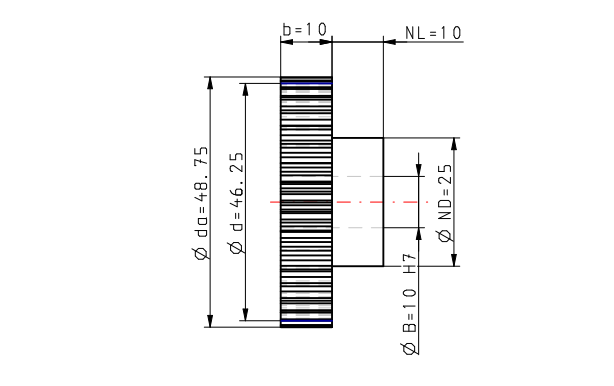 Bewerking tandwiel moduul 1.25 Z = 37 met naaf